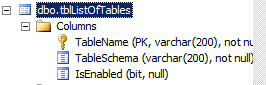 SELECT     TOP (200) TableName, TableSchema, IsEnabled