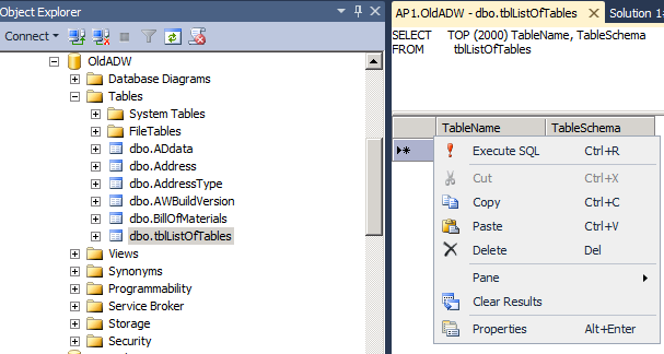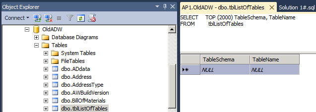 Lisäykseni on Michellen ratkaisuun muutos schema tiedon lisäämiseksi luotaviin tauluihin. Tällä tosin on merkistystä lähinnä SQL servereiden välillä tehtävästä siirrosta tai muiden kantojen välillä, jos halutaan määrittää schemat sql server puolella.